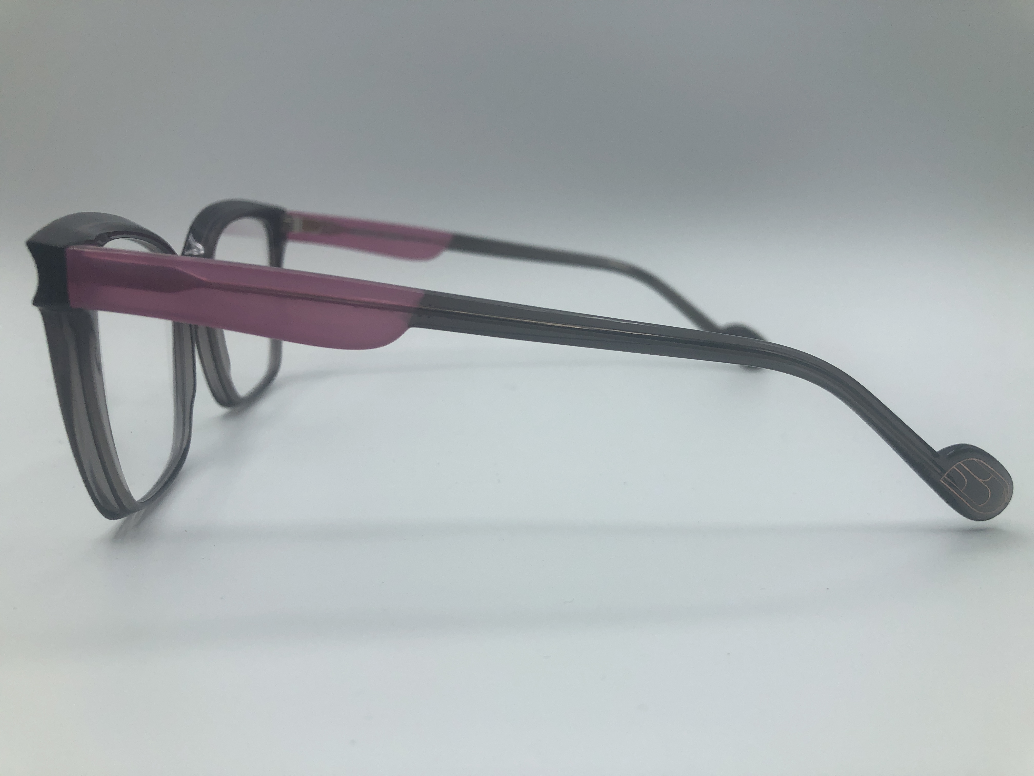 Acetate Fassung von Carolina Abram in Graun mit altrosanen Details am Bügel.