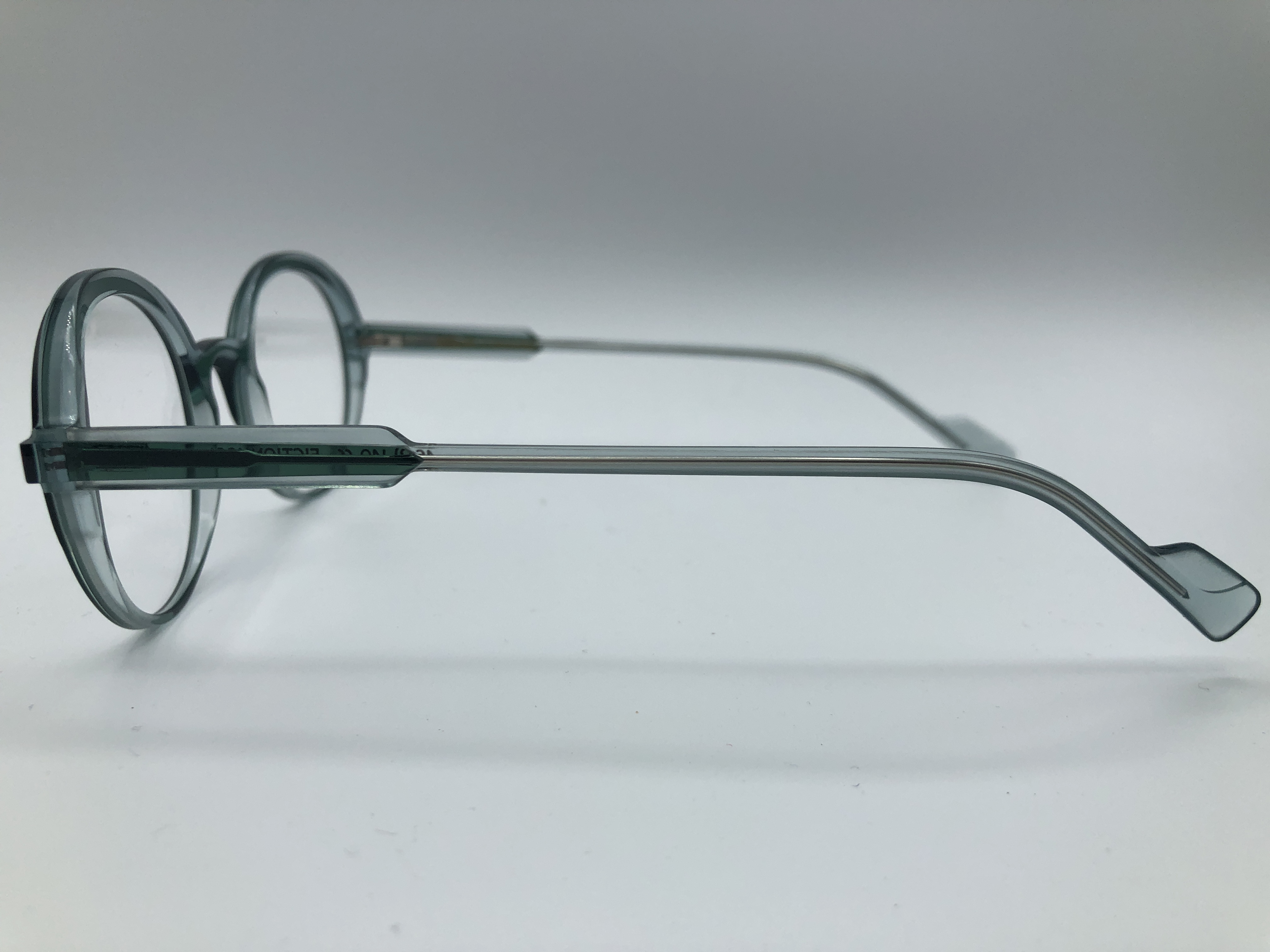 Modische Fassung in transperenten Dunkegrün mit hellblau und einem zweifabigen Bügel. Hergestellt aus hochwertigem Acetat.
