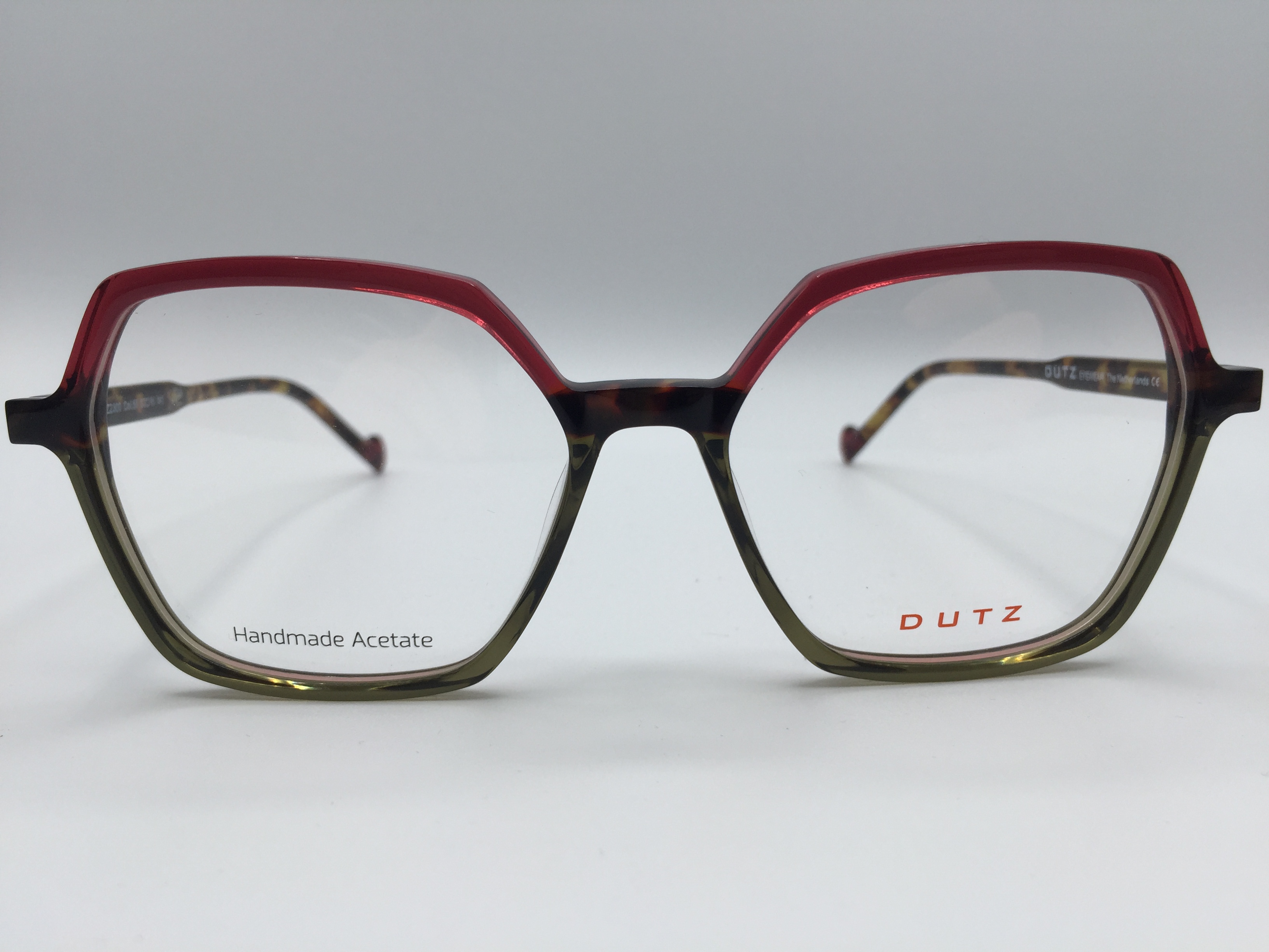 Kunststofffassung von Dutz in dunkelrosa-olivgrün und Bügeln in havanna.