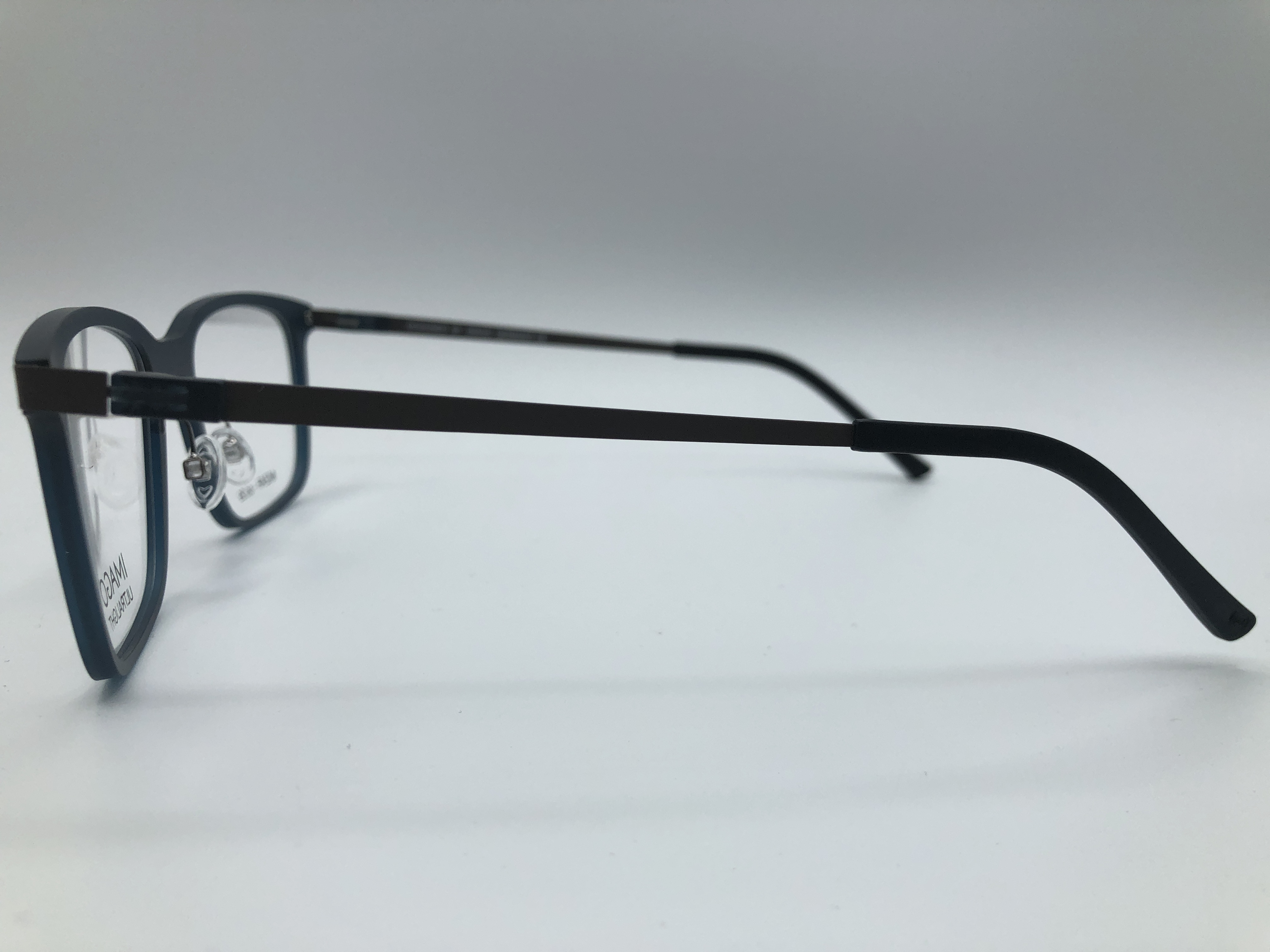 Fassung von Imago Ultralight in matt petrol mit brauen Bügeln.