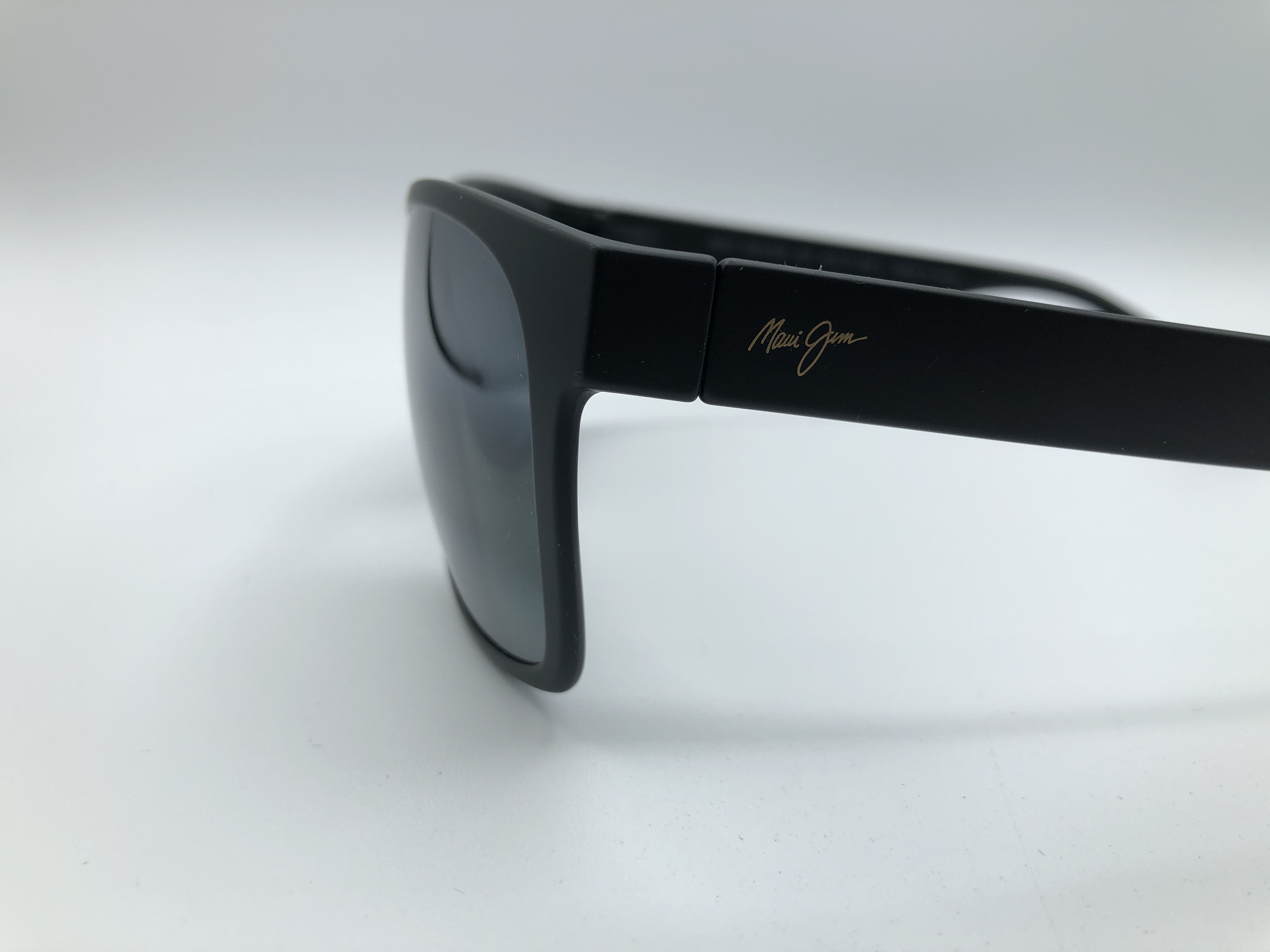 Moderne Kunststofffassung von Maui Jim in Matt schwarz mit grau polarisierten und Bi- Gradient verspiegelten Gläsern.