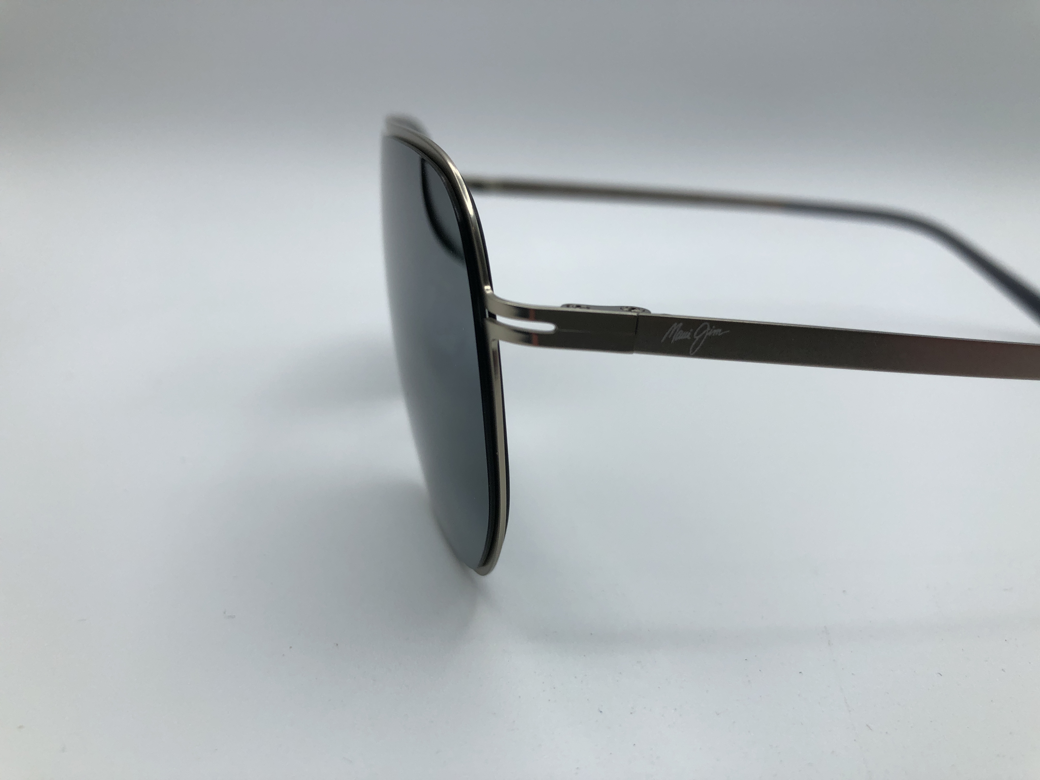 Moderne Doppelstegfassung von Maui Jim in Grau mit grau polarisierten und Bi- Gradient verspiegelten Gläsern.