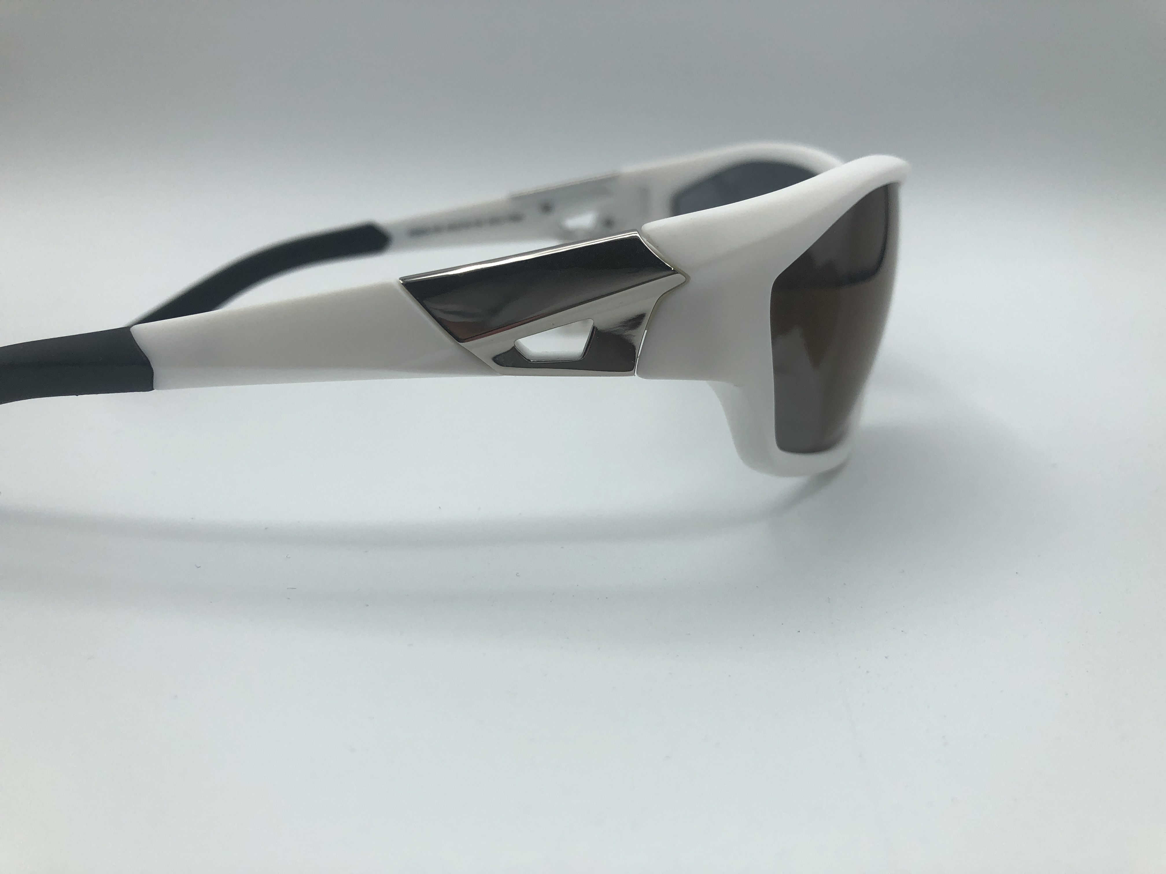 Weisse Sportbrille von Permormer und grauen, entspiegelten Gläsern