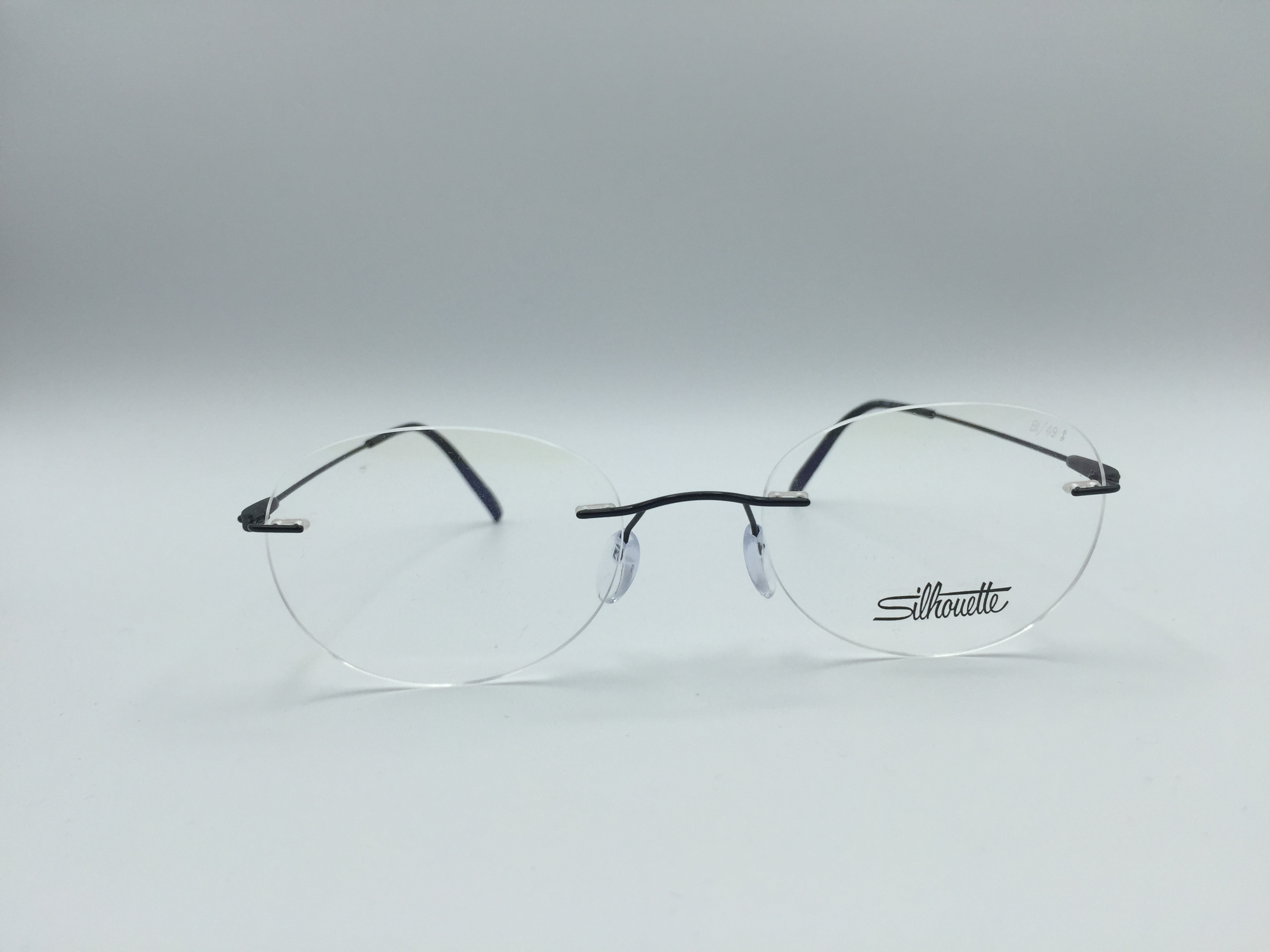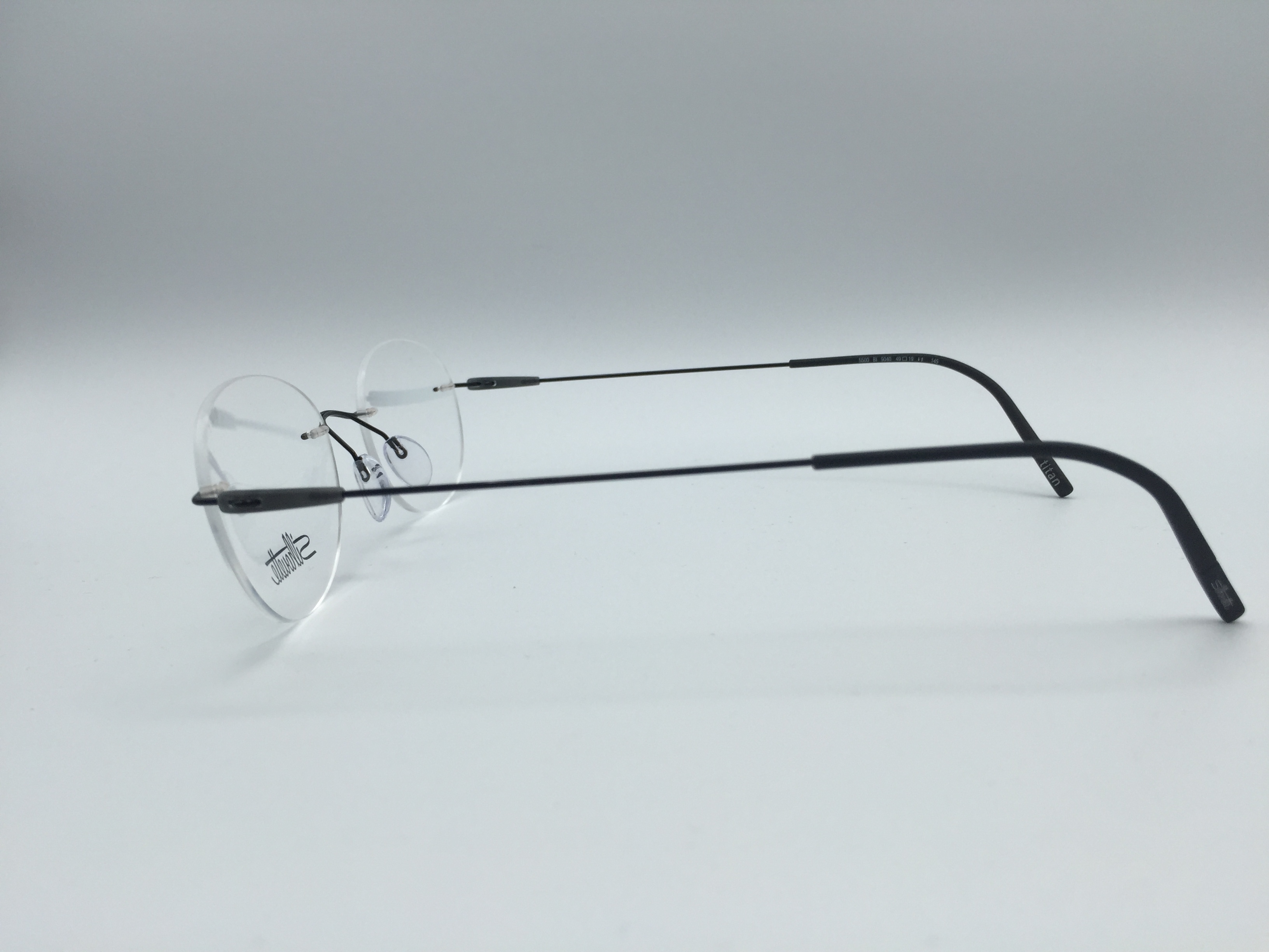 Randlose Fassung von Silhouette mit schwarzen Bügeln.