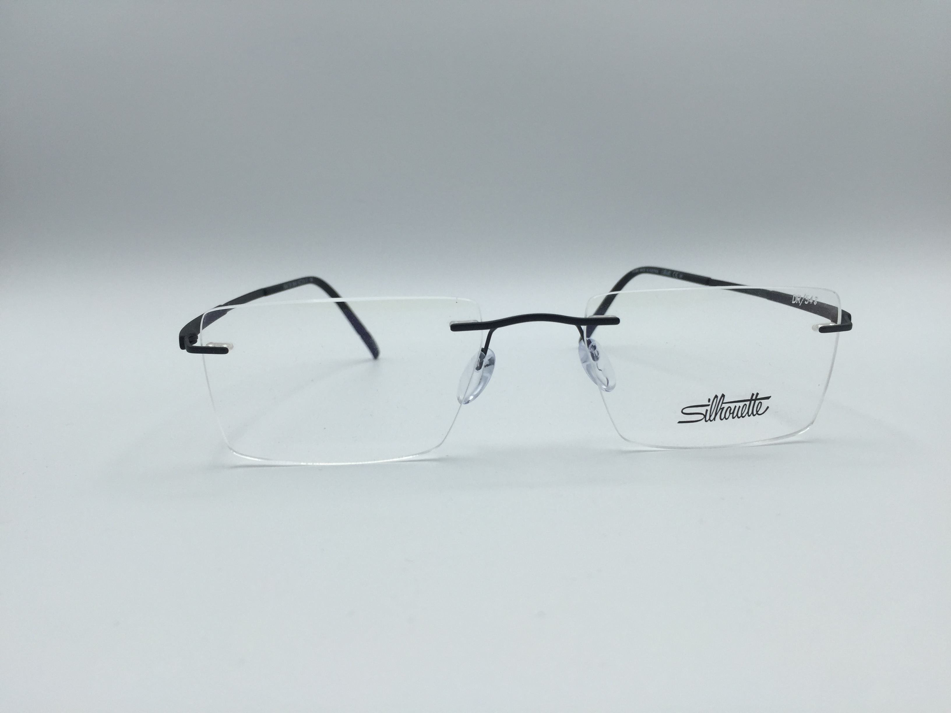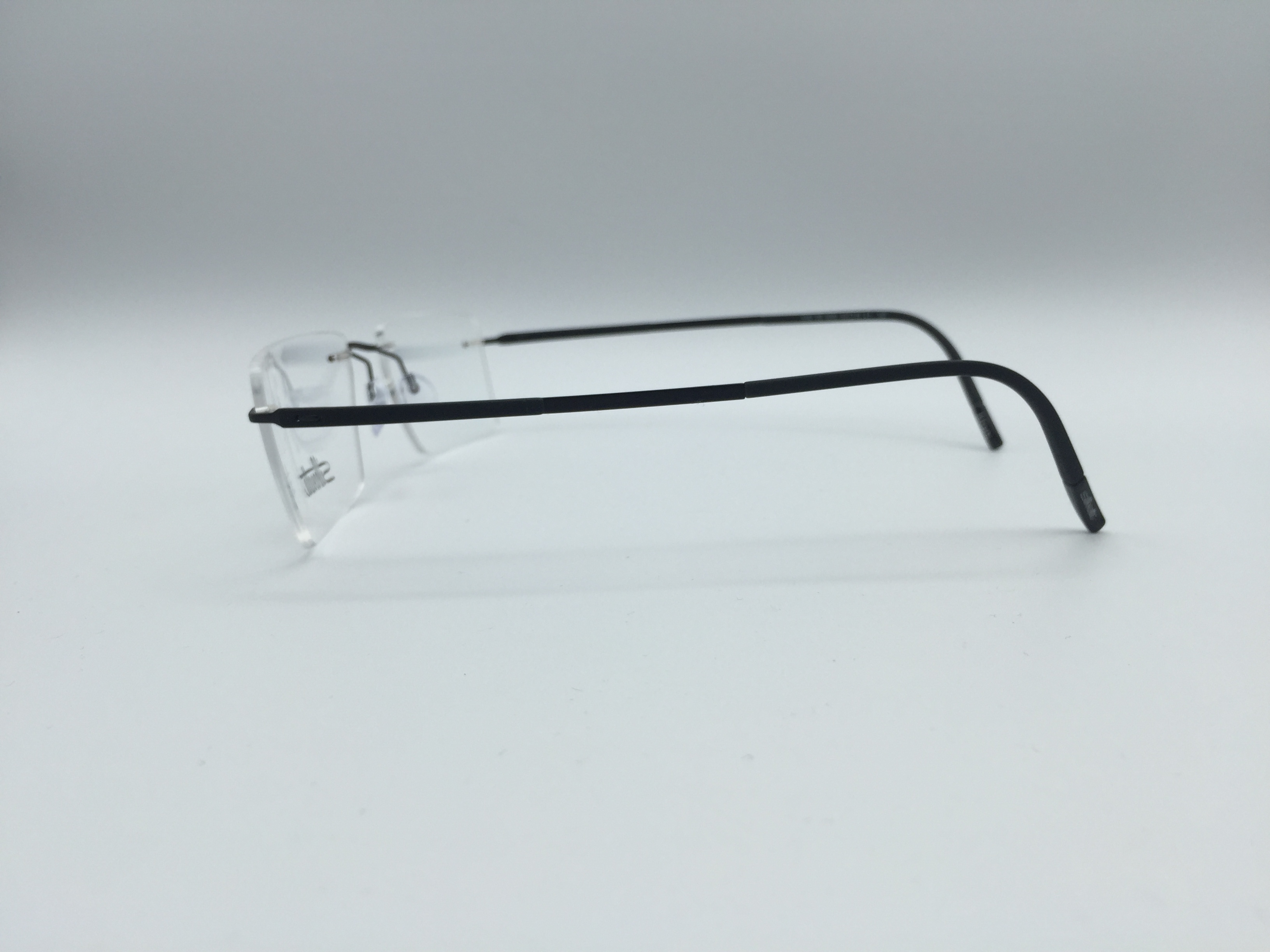 Randlose Fassung von Silhouette mit schwarzen Bügeln.