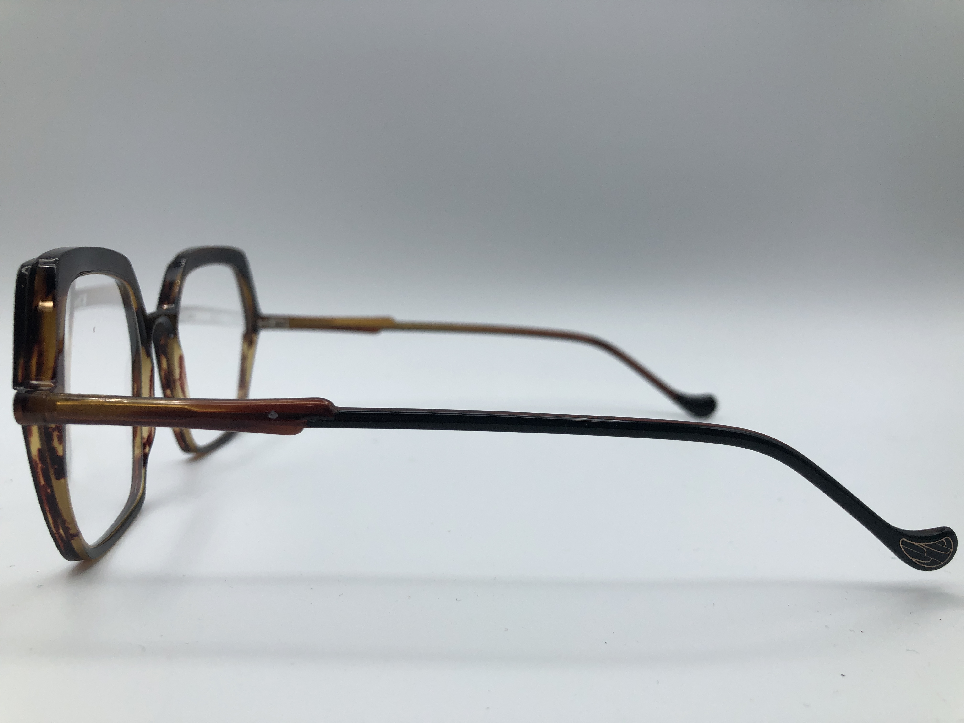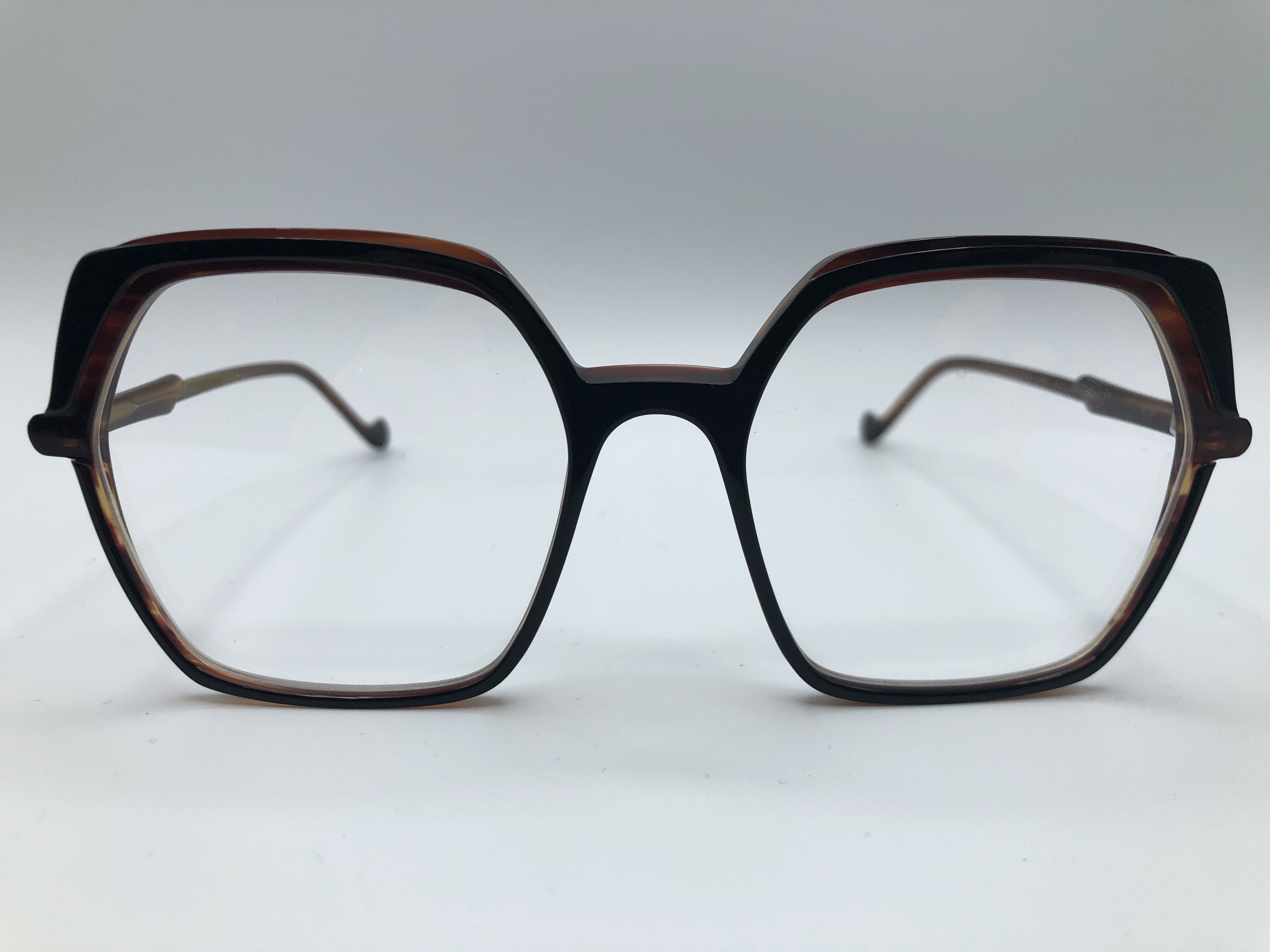 Modische Fassung in Havana/ Schwarz. Die Bügel sind in Havan und Schwarz. Hergestellt aus hochwertigem Acetate.