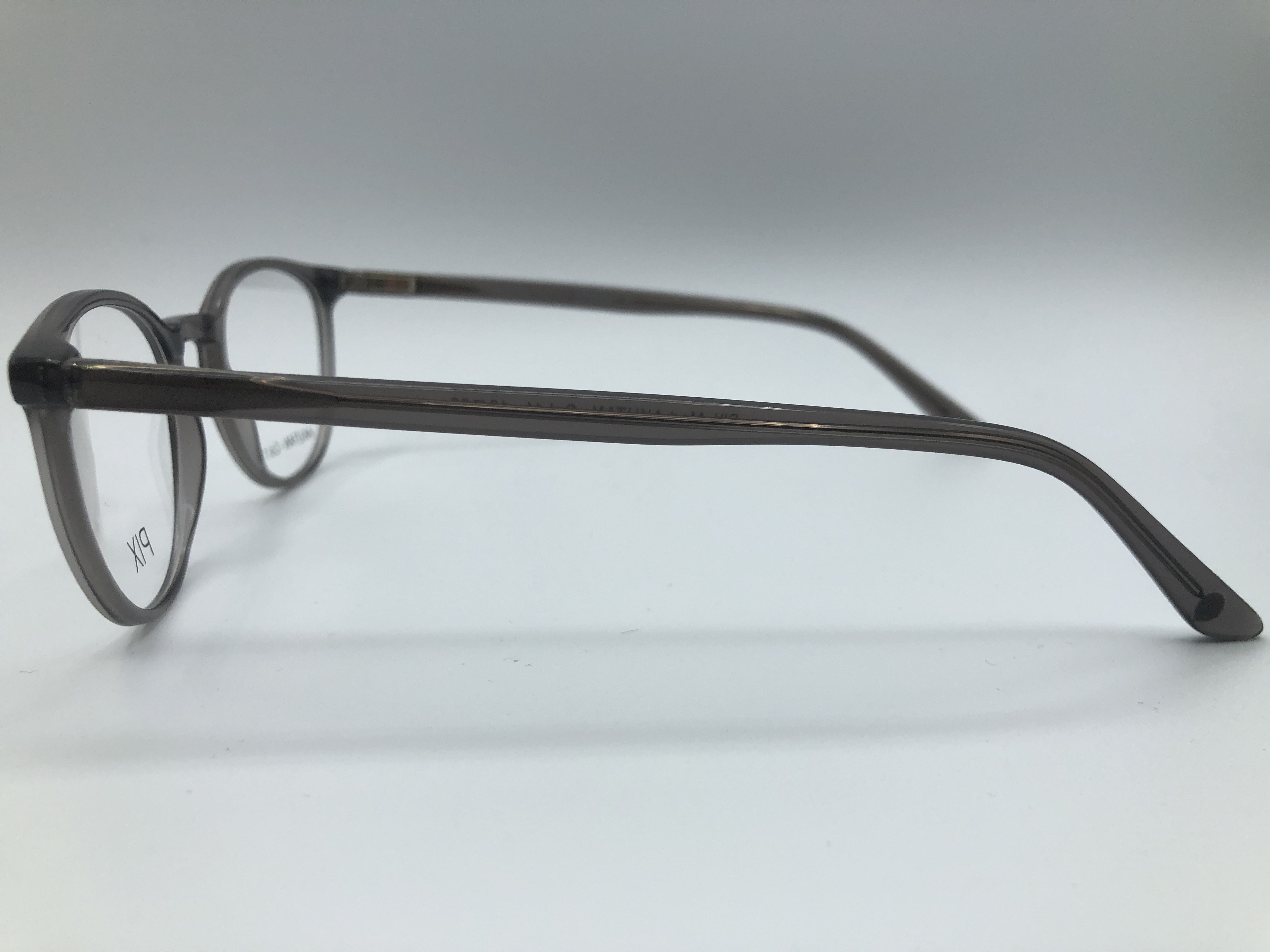 Pantoförmige Acetate Fassung in Grau glänzend.