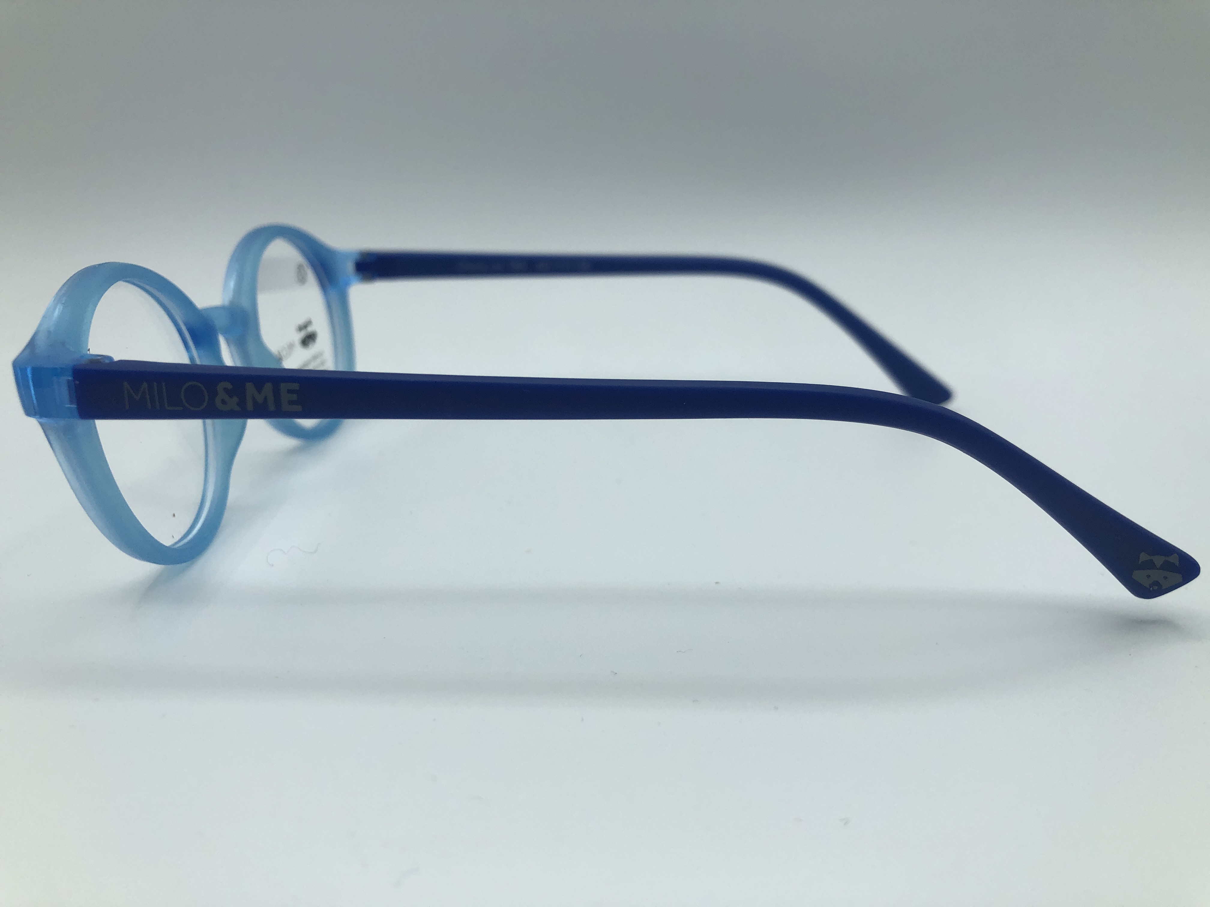 Hellblaue Kinderbrille aus sehr robustem Kunststoff. Die Bügel sind in einem dunklerem Blau, können individuell angepasst werden und sorgen so für einen optimalen Sitz.