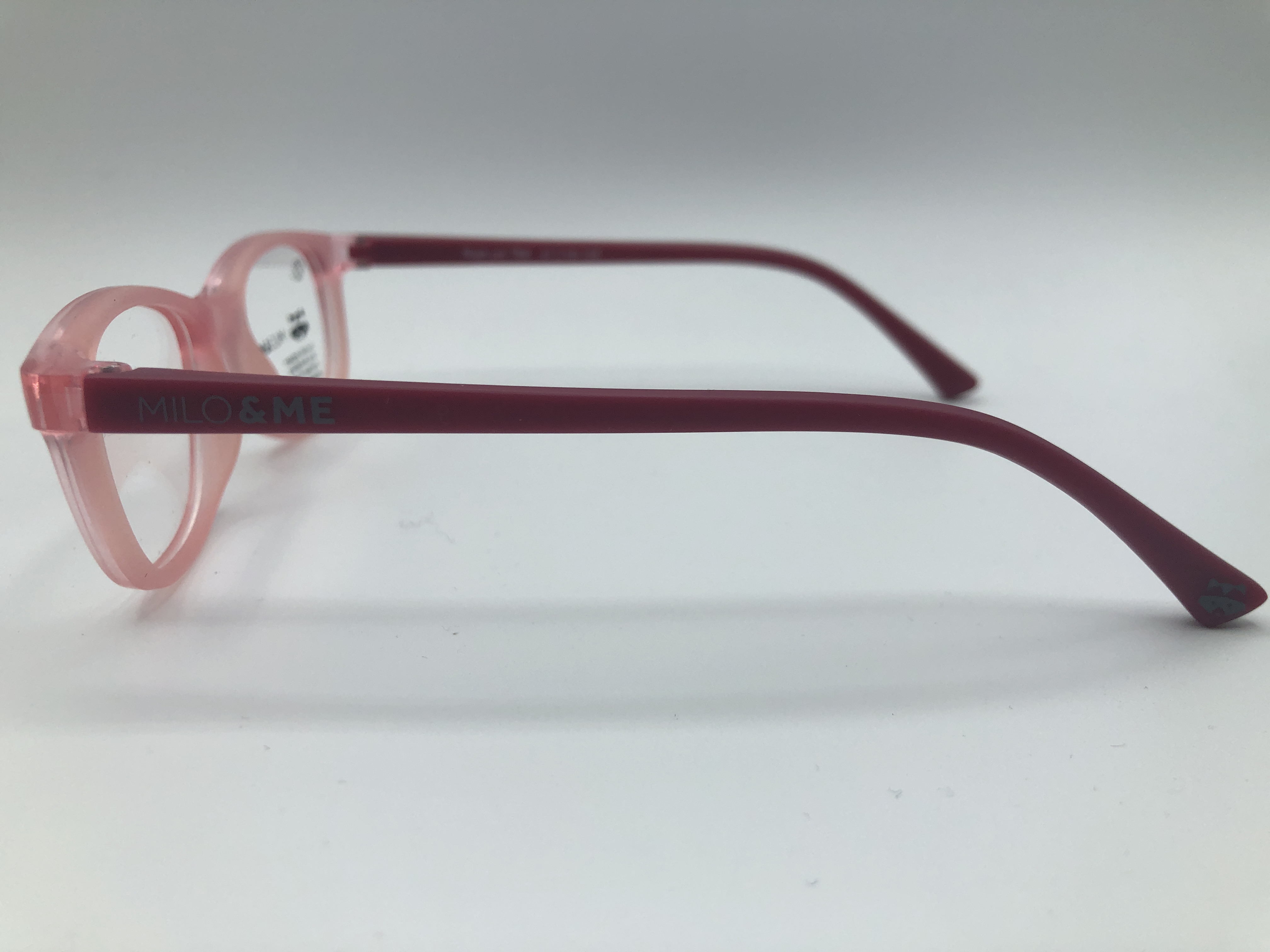 Rosane Kinderbrille aus sehr robustem Kunststoff. Die Bügel sind in einem etwas dunklerem Pink und können individuell angepasst werden.