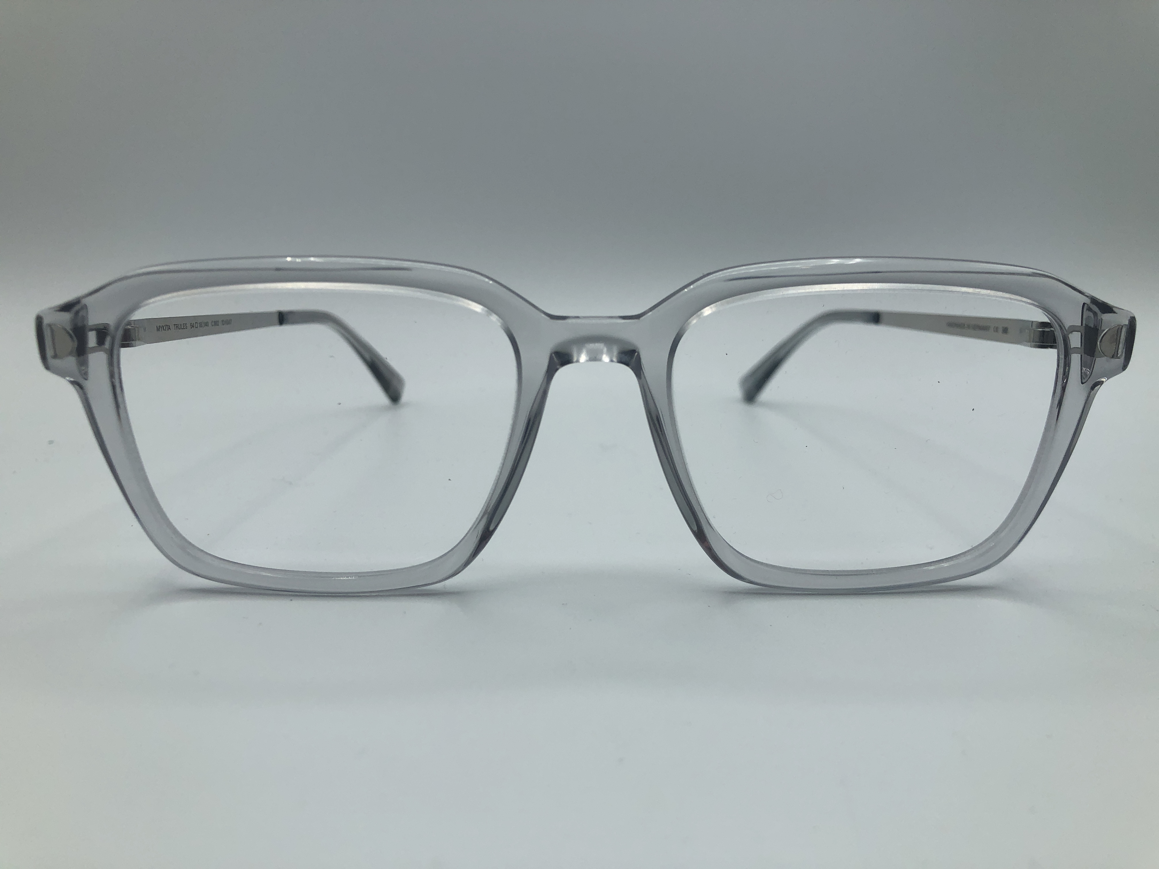 Transparente Acetatbrille mit silbernen Edelstahlbügeln