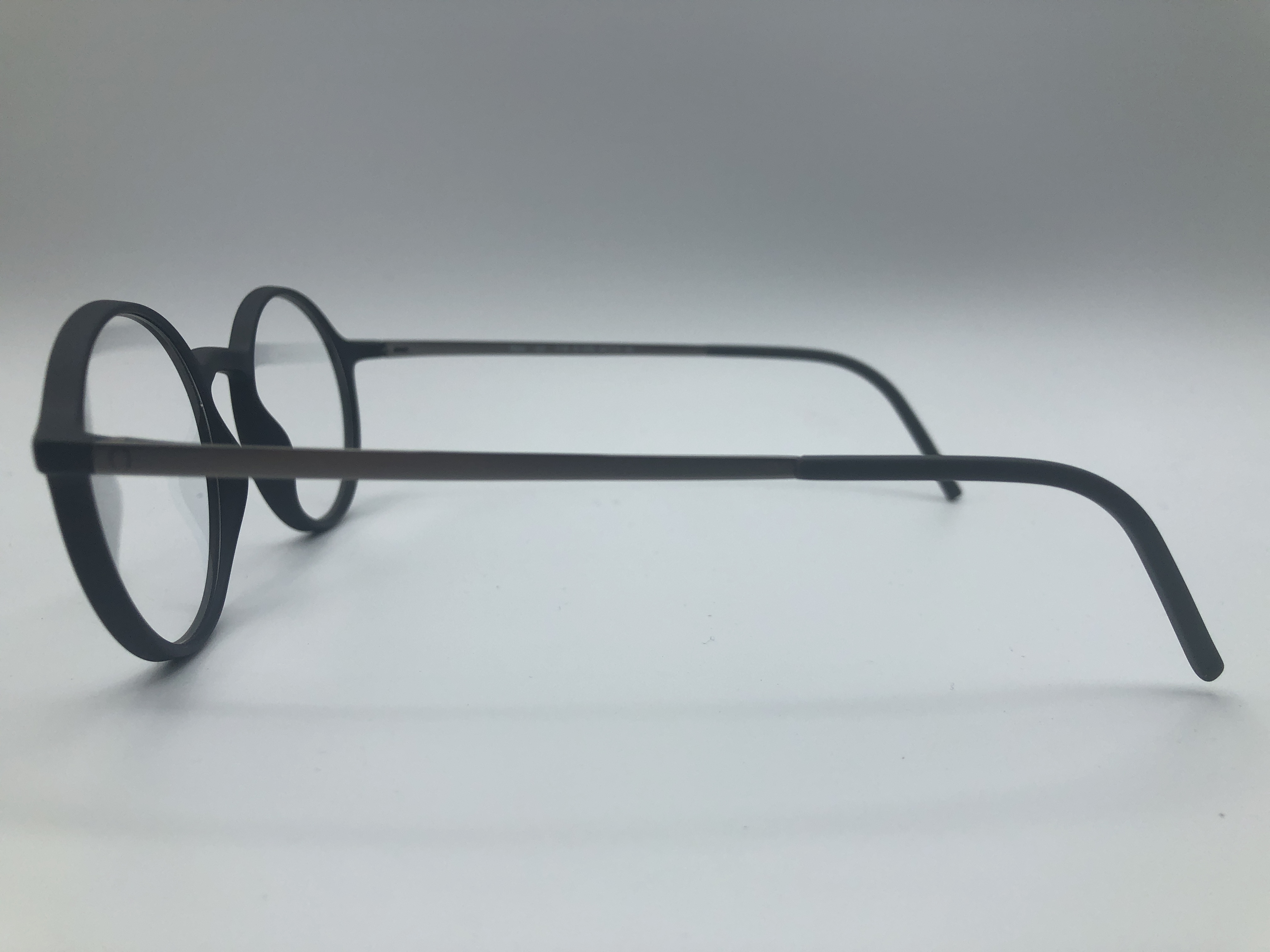 Moderne Fassung von Neubau in matt schwarz. Die Bügel der Fassung sind in einem passenden silber.