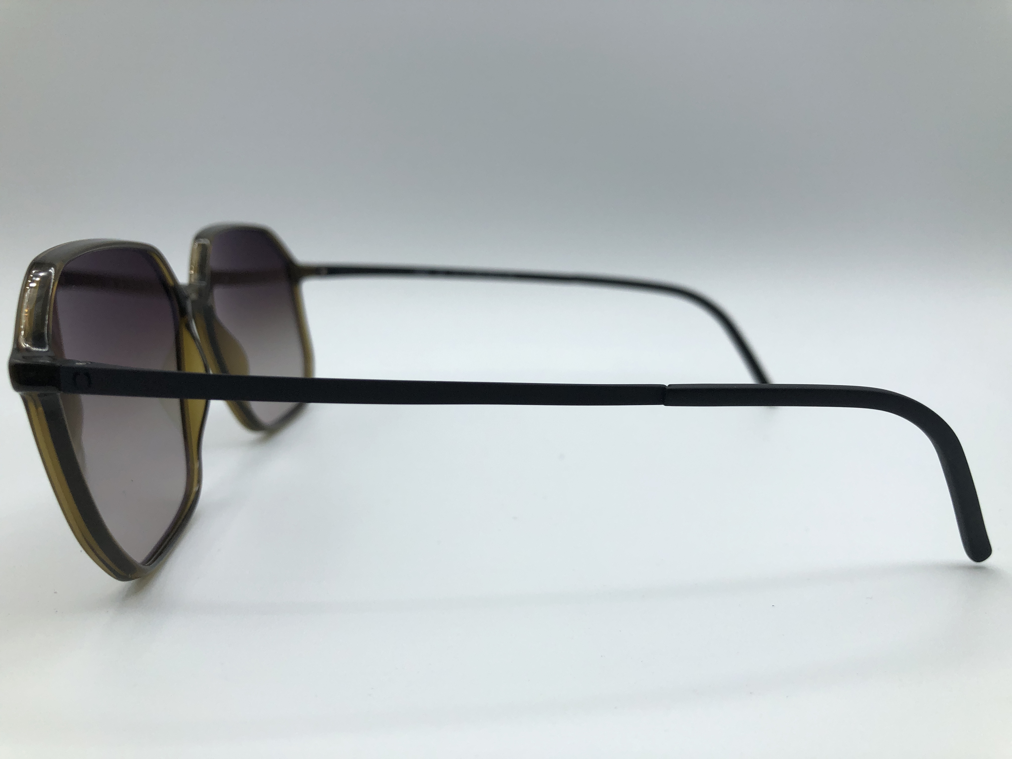 Moderne Sonnenbrille von Neubau in einem leichten transperenten Braun. Die Gläser sind braun getönt und haben einen Farbverlauf.