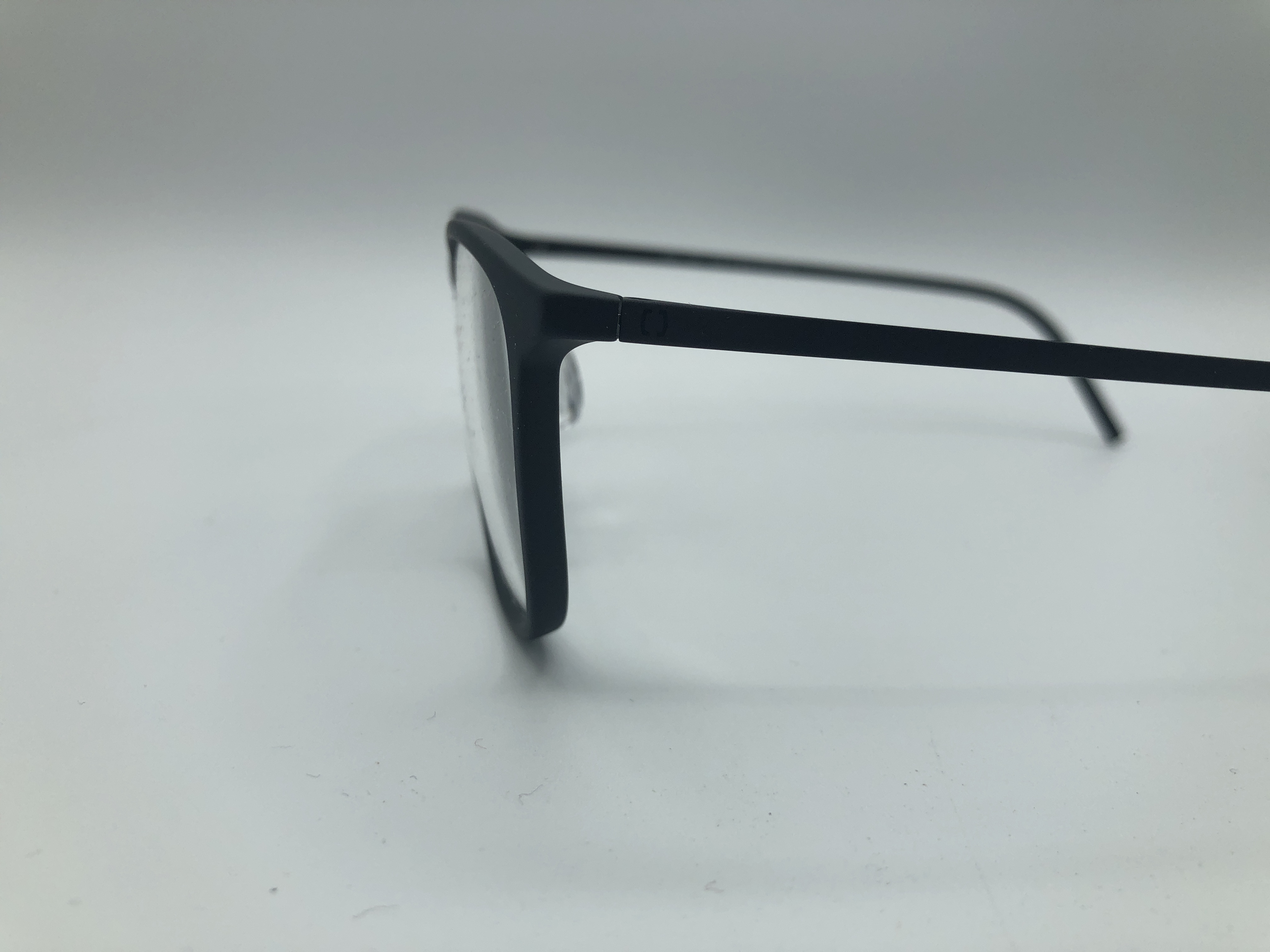 Schwarze Acetatfassung mit Nasenstegen und schwarzen Edelstahlbügeln