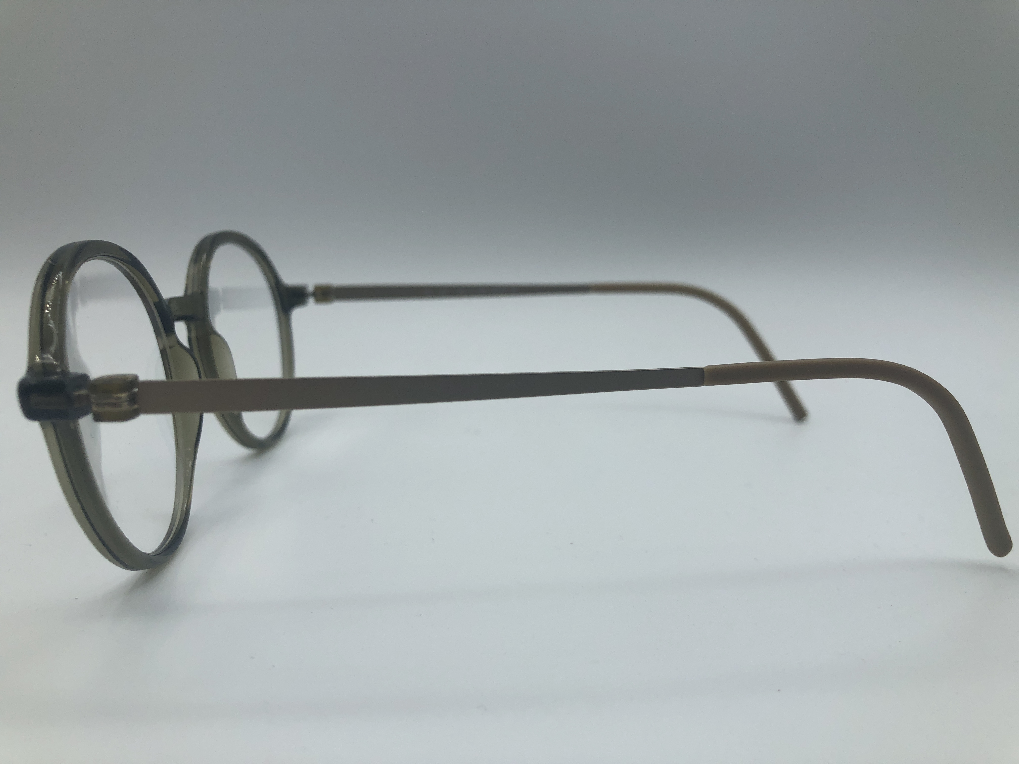 Moderne Runde Fassung in Olivgrün mit goldenen Bügeln aus Acetate und Titan.