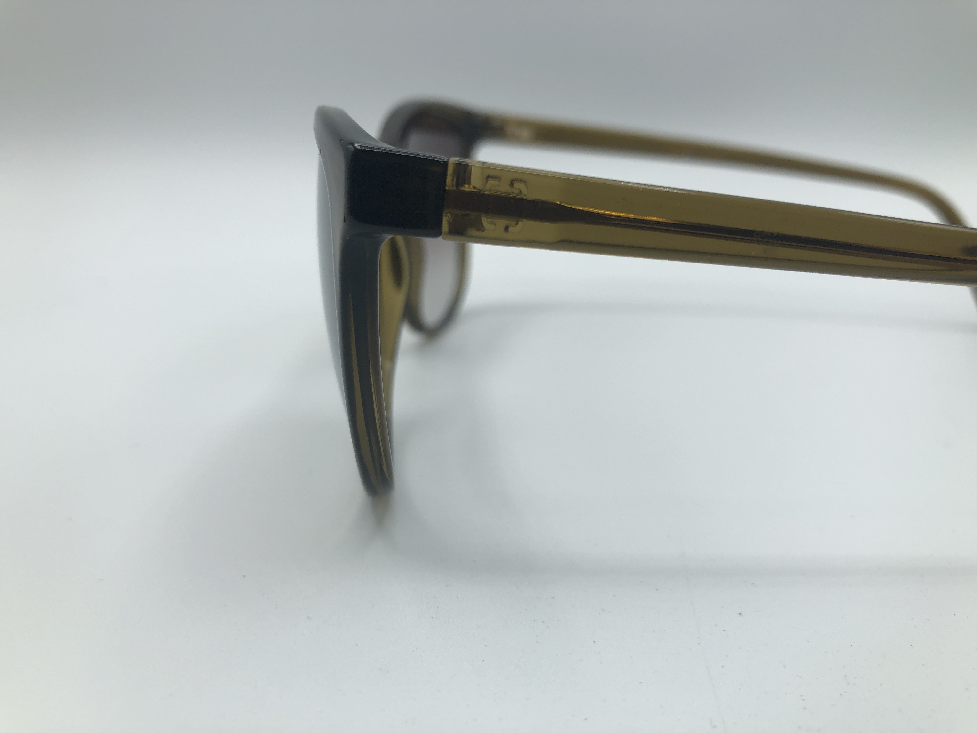 Olivgrüne Sonnenbrille aus Acetat mit braun verlauf Gläser und goldenen Spiegel
