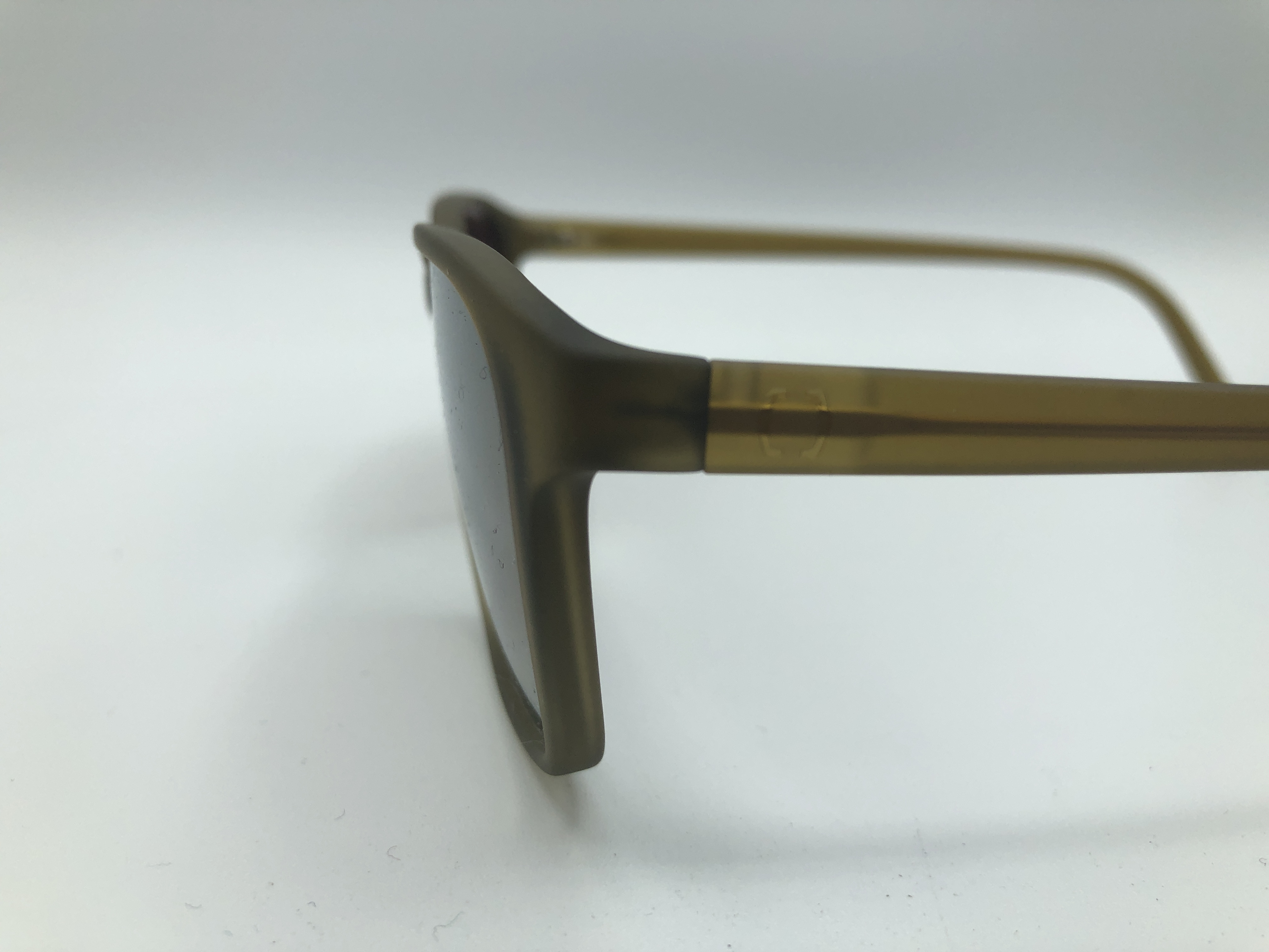 Honig-matte Acetatfassung mit braunen Verlaufsgläsern und dezenten Goldspiegel
