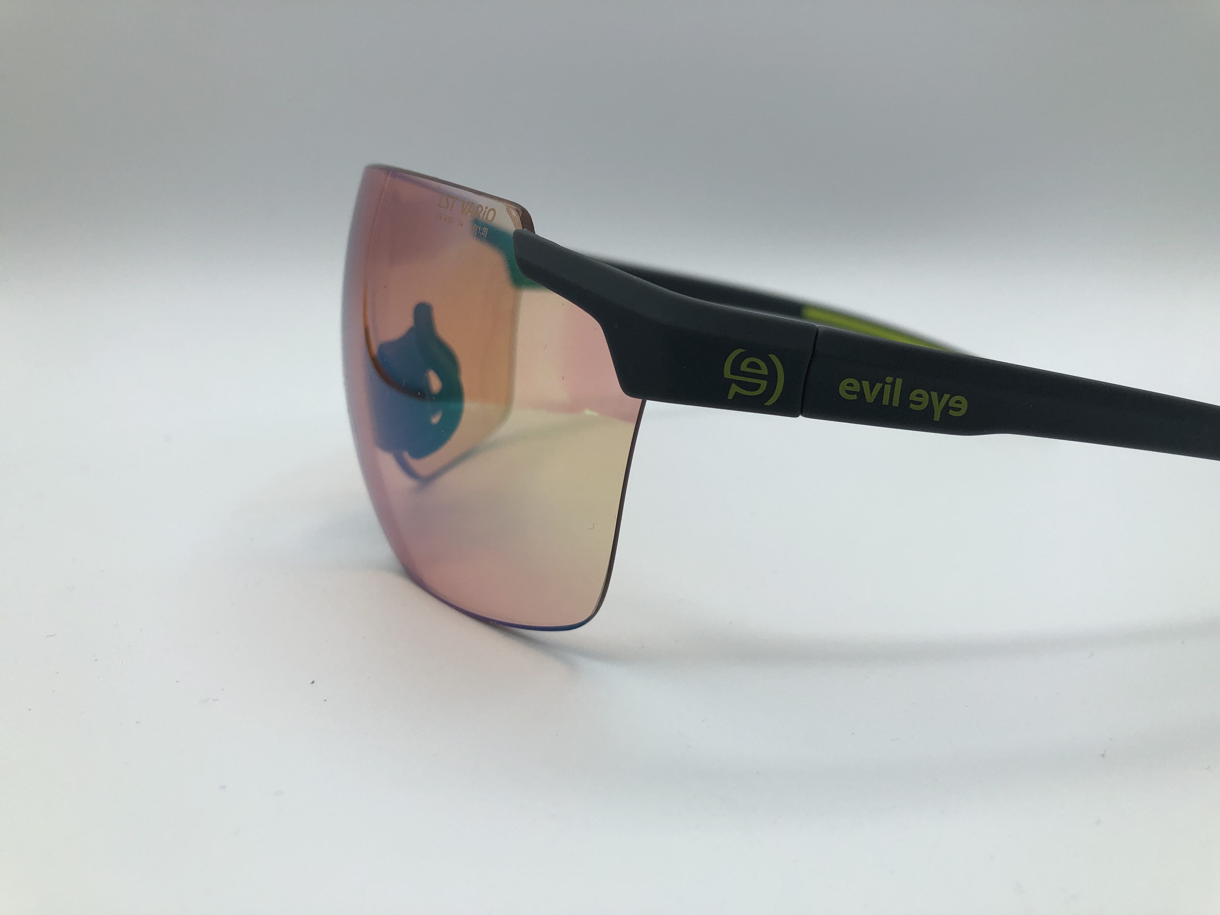 Sportbrille von evil eye in grau mit Kontraststeigernden, selbsttöneden Brillengläsern und einer Blau-Grünen Verspiegelung (LST® Light Stabilizing Technology Mirror).