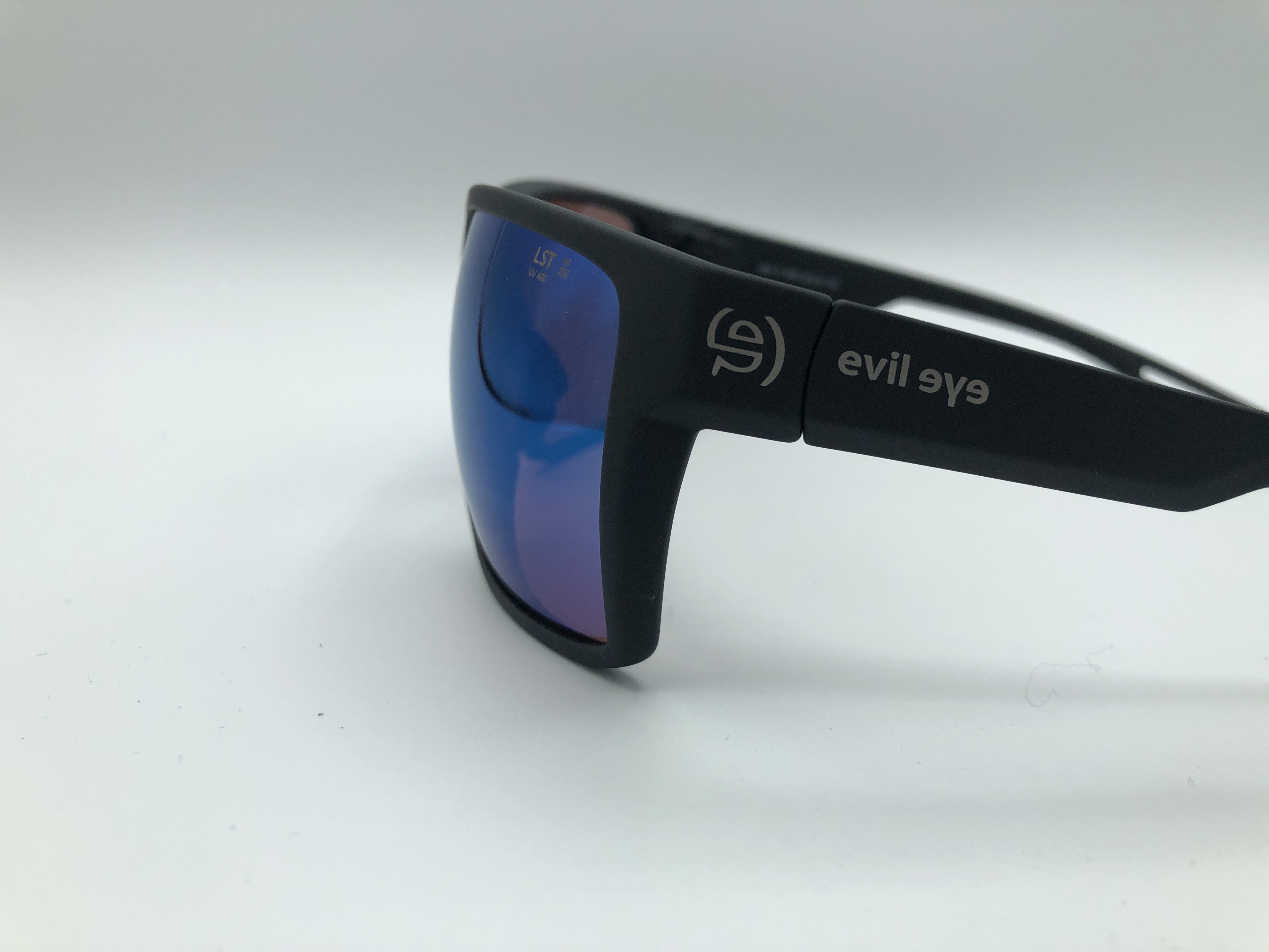 Sonnenbrille von evil eye in mattschwarz mit Kontraststeigernden Brillengläsern und einer Blauen Verspiegelung (
